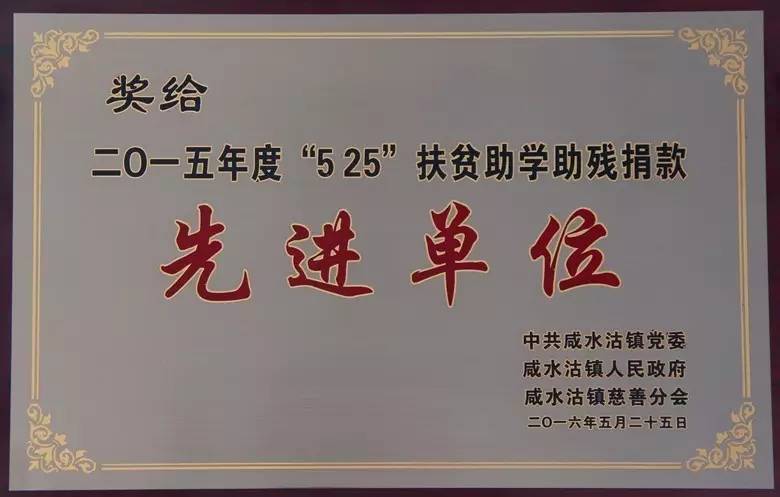 安捷物联获2015年度“5·25”扶贫助学助残捐款先进单位称号