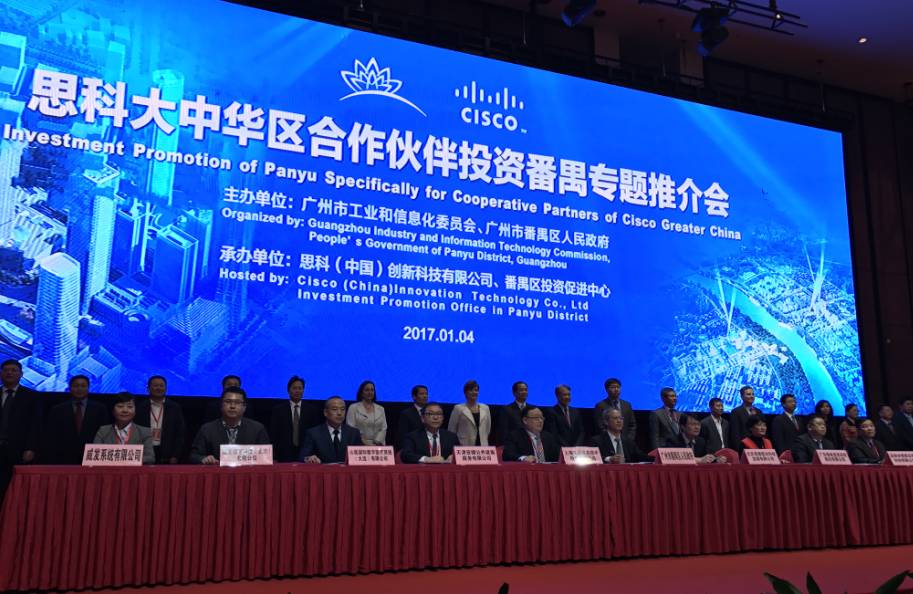 1月4日,广州市工业和信息化委员会、番禺区政府在长隆国际会展中心举办“思科大中华区合作伙伴投资番禺”专题推介会。番禺区向思科全球合作伙伴宣传番禺区投资环境,共同打造经济体量达千亿级的思科(广州)智慧城。推介会上,天津安捷物联等10余家合作伙伴签订合作意向书。2016年,安捷物联与思科合作,共同打造在广州番禺区落户的国际创新城思科(广州)智慧城项目。在未来数年,将在互联网+智能制造、智慧城市等领域打造一个在中国和世界都叫得响的样板创新项目。