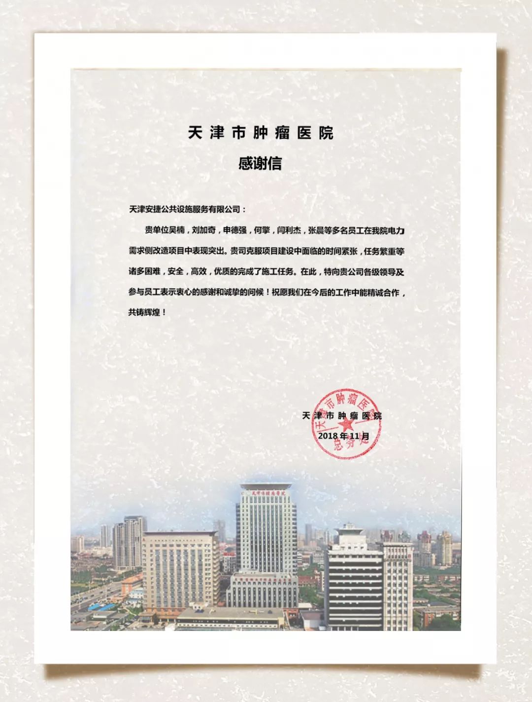 为确保项目在短时间内改造完成,同时具备科学性、专业性、合理性。安捷的工作人员利用起每分每秒,甚至连续四天工作到凌晨四点钟。项目的完成离不开前线人员加班加点的工作,同时也离不开各部门积极配合,各级领导的大力支持。完工验收会上,天津市肿瘤医院各级领导对安捷交付的工作成果非常满意,对安捷工作人员的专业态度及敬业精神表达了高度的赞扬。