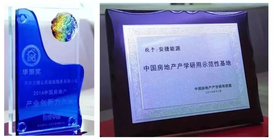 安捷不断提升自身实力的同时积极地参与协会的各项工作,助力中国房地产业的升级。2016年中国房协指导的“首届中国房地产产学研发展峰会暨第九届中国房地产策划师年会”上,安捷同时荣获“2016中国房地产产业创新力大奖” “中国房地产产学研用示范性基地”两项殊荣!