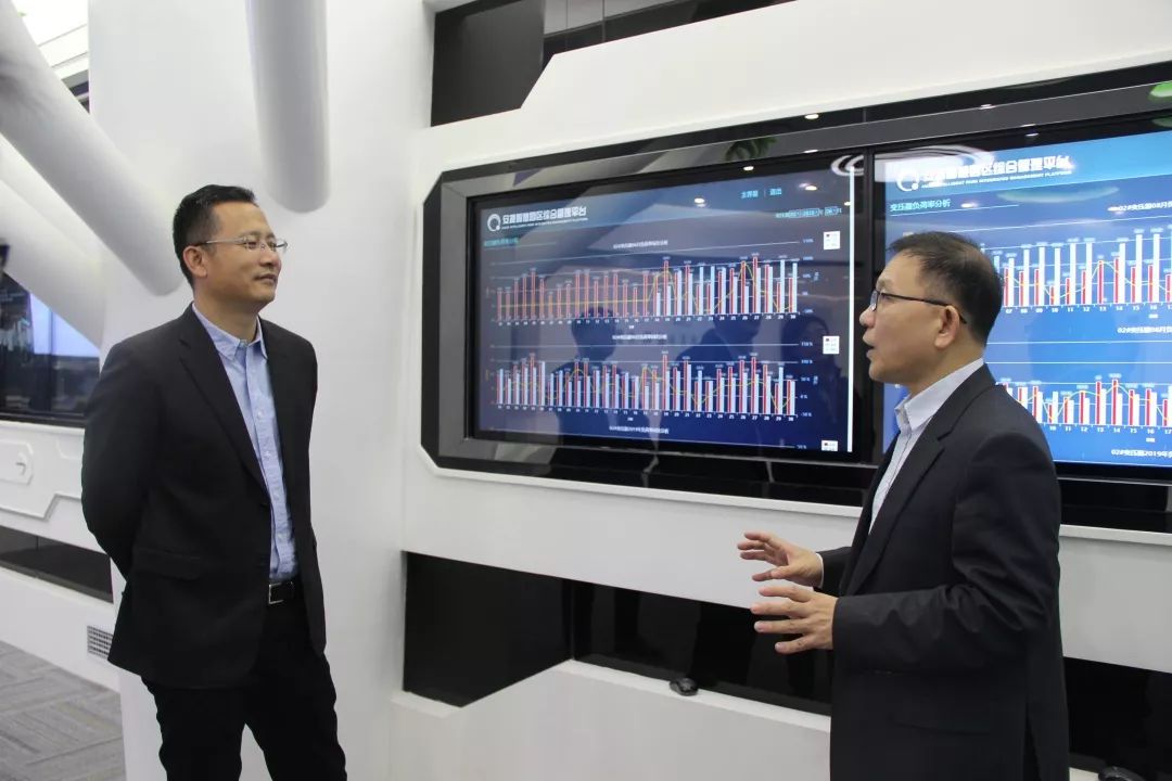 隋总一行详细参观安捷物联展厅,董事长刘柏呈详细介绍了由安捷自主研发的Coral物联网系统,该系统采用大数据、云/边缘计算、流处理等先进技术,结合自身在能源及基础设施监控等行业的深厚沉淀,可承担能效监测、管理、控制一体化运营的多项目/区域的能源基础公共设施物联网管理运营工作。