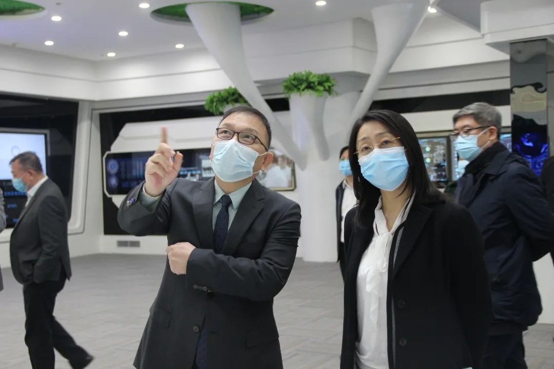 到访领导一行先后参观了安捷物联展厅及调控中心,详细了解安捷在物联网领域的技术研发与科技成果,安捷物联董事长刘柏呈结合自身科技和商业模式创新,详细讲解了Coral物联网平台与数字孪生系统等各项最新技术。