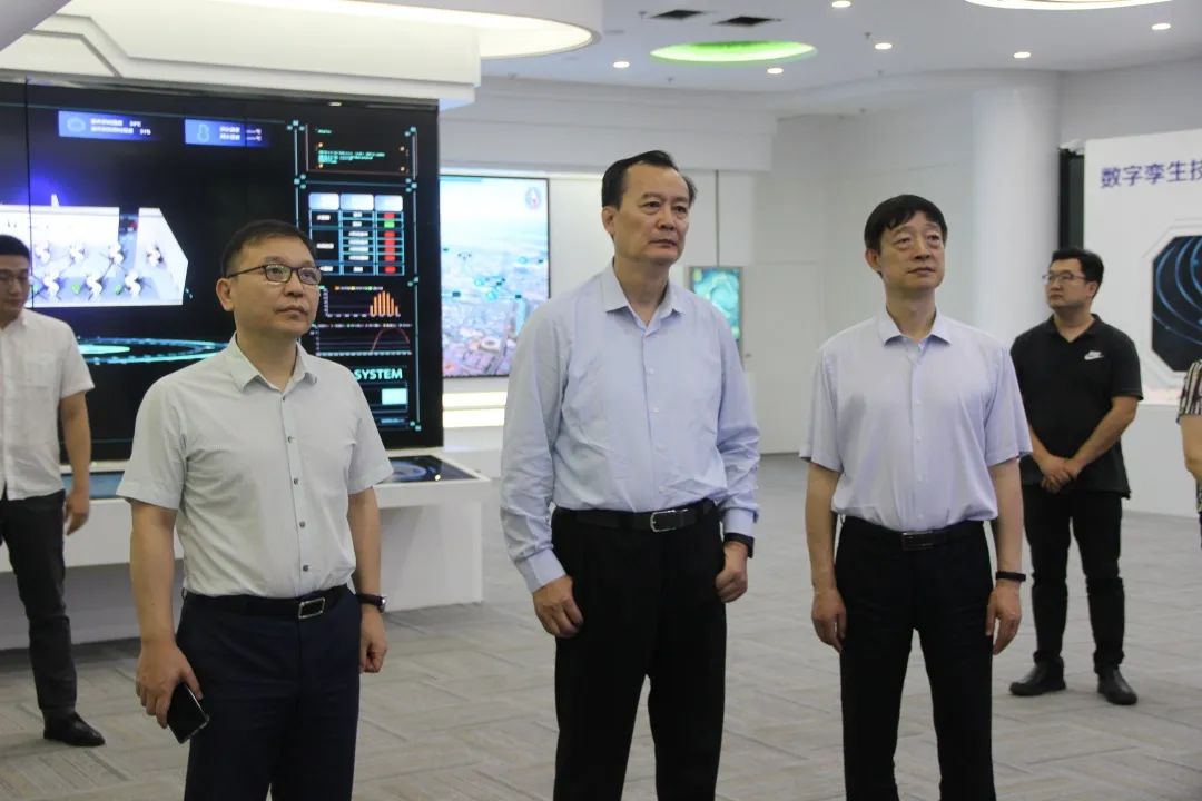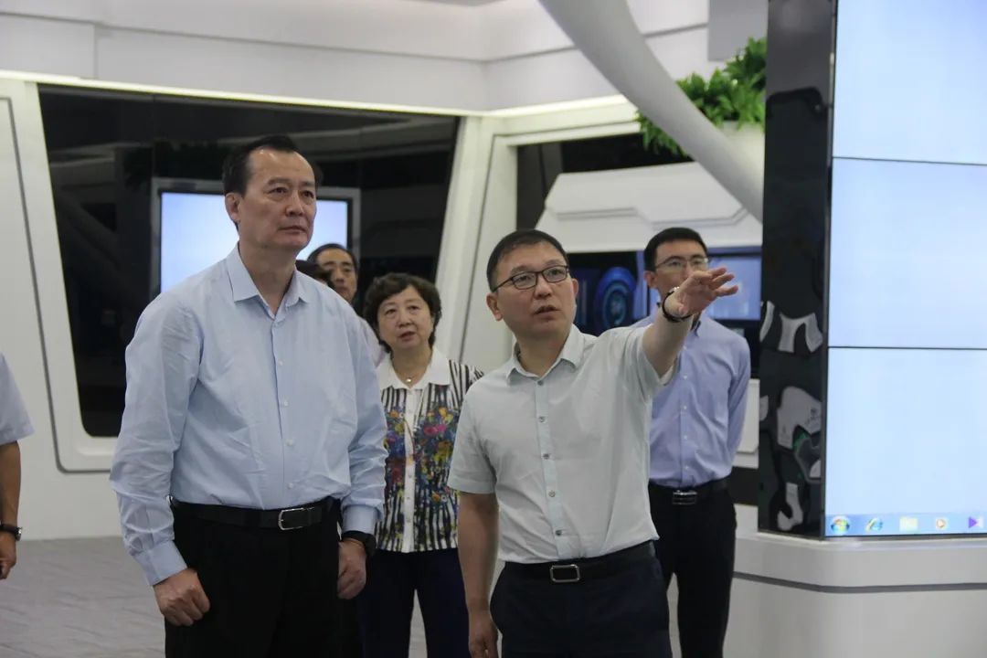到访领导一行先后参观了安捷物联展厅及调控中心,安捷物联董事长刘柏呈结合自身科技和商业模式创新,详细讲解了Coral物联网平台、能源路由器及数字孪生等技术。