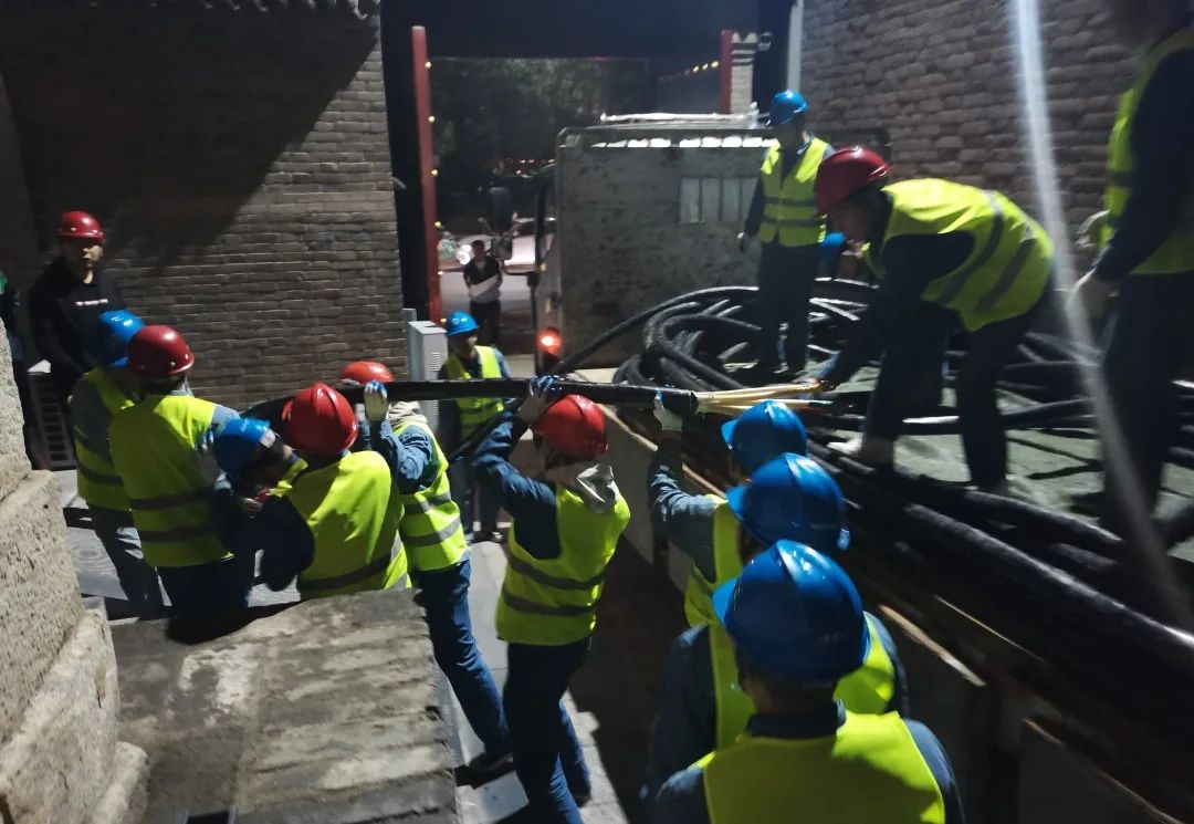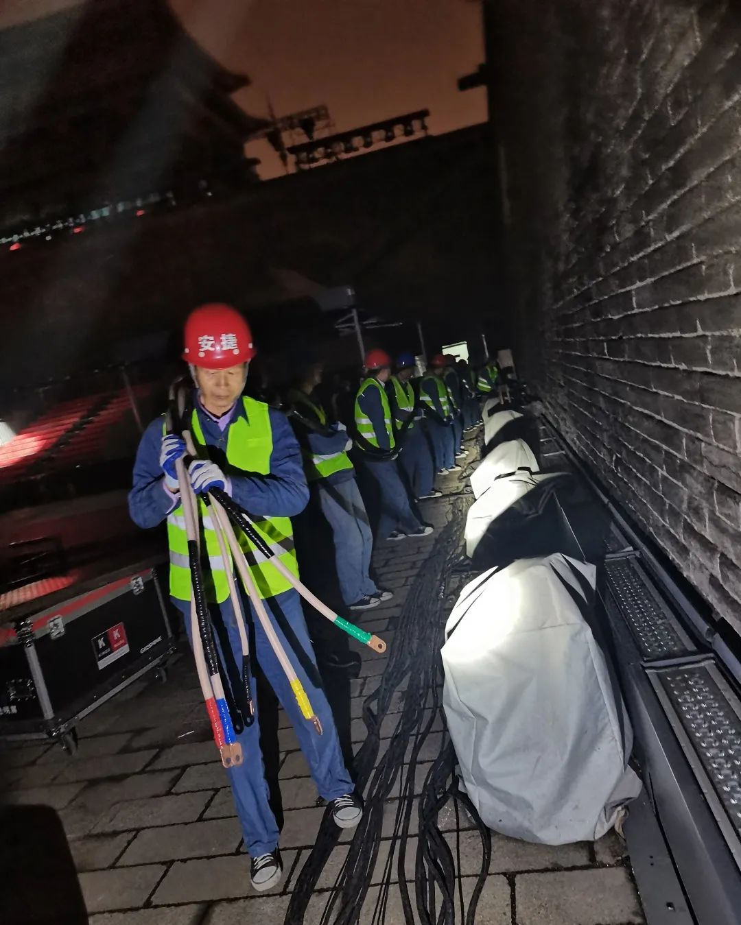 接到本次保电任务,安捷物联提前周密部署,统筹安排人员,制定完善的保电方案,40余位工作人员连夜铺设电缆,奋战3天,现场调试设备,轮班值守。现场由24人组成的安捷物联保电人员分为四小队及后勤保障组,细化分工,各小组人员全程坚守岗位,加强关键环节和点位的监控,随时应对活动现场供电突发情况,确保了此次丝绸之路国际电影节的顺利开幕。