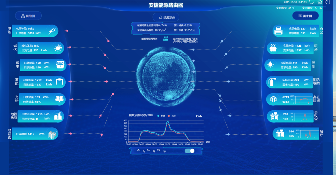 安捷物联拥有一套成熟的物联网技术,能够将绿色建筑、智慧城市等先进理念融入到规划设计、施工建造等环节当中:如数字孪生技术可构建出从极致的城市场景和数据可视化、物联控制,到仿真,到预测、决策,再到优化治理的良性系统,可通过预演城市建设方案以及仿真结果,高效指导真实城市建设;由安捷物联自主研发的能源路由器,能够实现能源需求侧与供给侧的精准匹配,控制逻辑可根据环境的改变自适应改变,在保障使用效果的前提下,提高电能使用效率并降低能耗,达到管理节能、控制节能的目的。