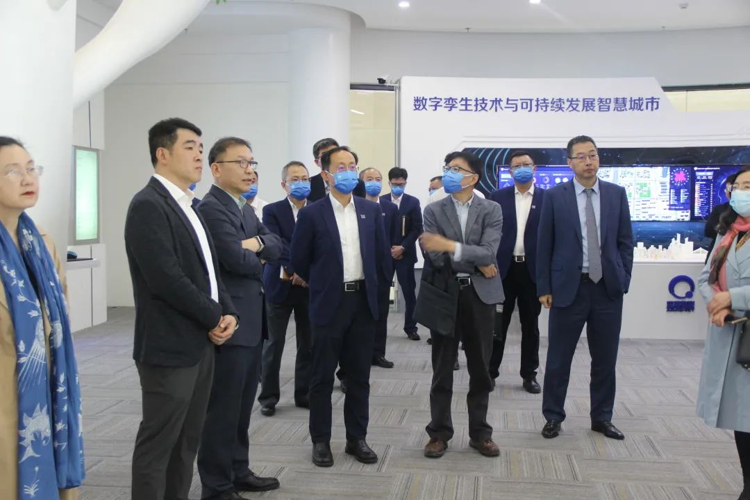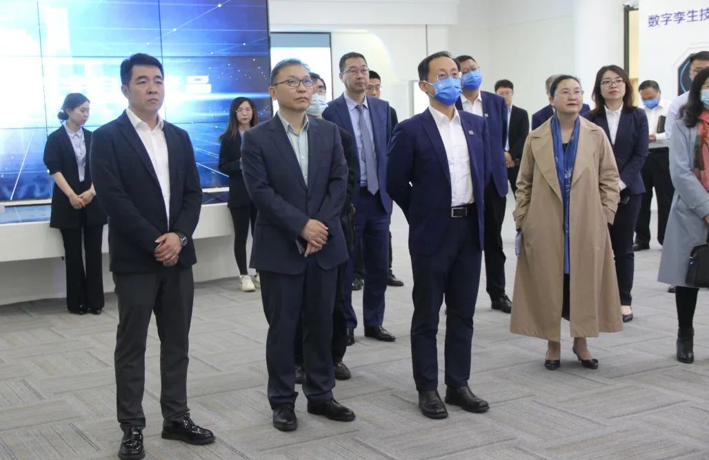 到访领导一行先后参观了安捷物联展厅及调控中心,安捷物联董事长刘柏呈详细讲解了由安捷物联自主研发的能源路由器、碳管理平台、coral物联网系统及数字孪生等技术。