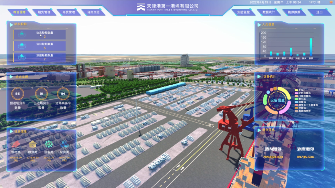 由安捷物联与天津港一公司共同打造的数字孪生系统一期项目,以数据支撑底座,能够实现可视化,将泊位、停船、场地、货物、视频监控等信息实时展示出来。一期项目是优化资源利用、提高港口运转效率的第一步,也是双方为2022年的系统深化,将人、机、车、船、货、场资源充分结合调用起来,从而提高货物周转率、场地使用率,最终指导生产、实现降本增效所打下的坚实基础。