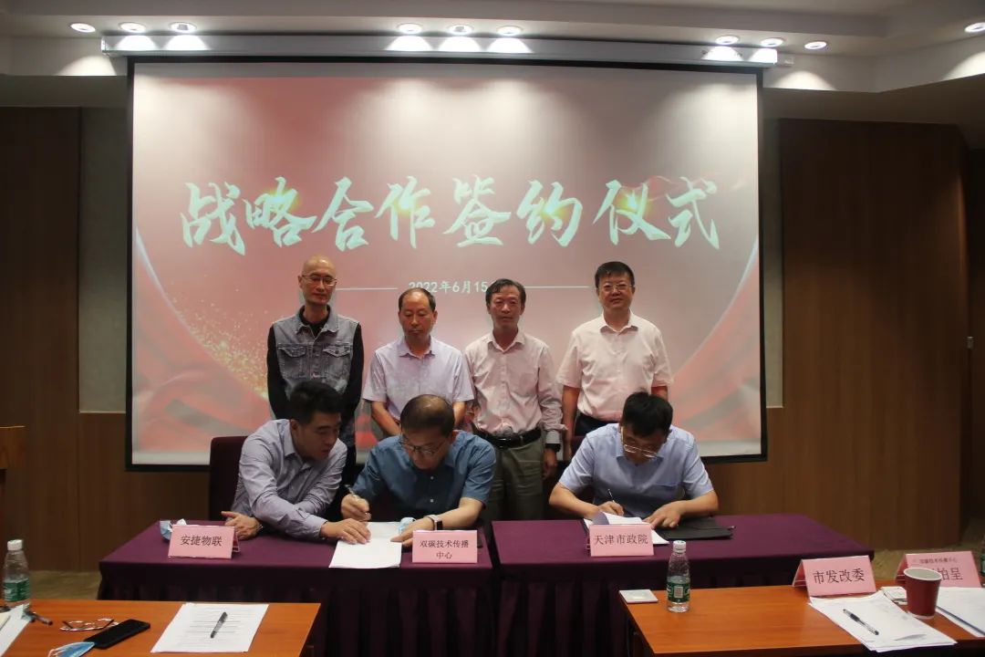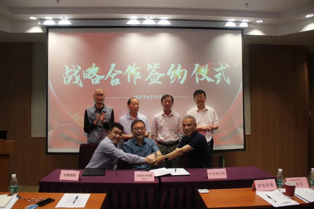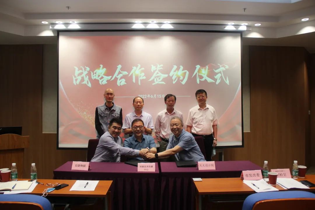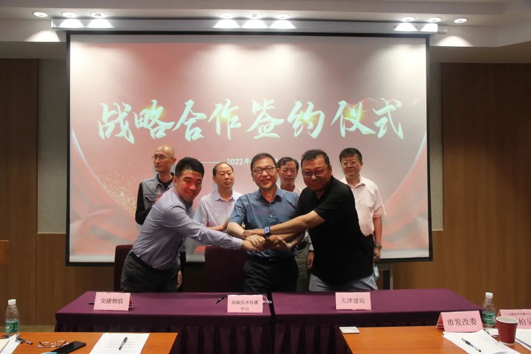 随后,双碳技术传播中心理事长兼安捷物联董事长刘柏呈、安捷物联总裁王涛分别与天津市政院、天津建院、天大设计院、华北设计院、天津城建院签订战略合作协议,达成了一系列合作意向,共同开启天津市公共基建项目的“双碳”时代。