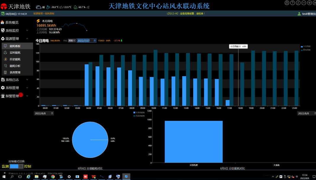 目前,风水联动系统已经在天津6号线文化中心站进行部署,该站是集文化、商业、休闲为一体的大型综合性轨道交通换乘站,客流量大、换乘通道多、客流分布不规律,传统的人工调节空调模式能耗高、灵活性差,更换为安捷风水联动系统后,可根据站内客流量的变化,第一时间进行温度的调节,并根据同时段出行情况,进行客流预测,自动调节温度,在制冷季可为空调系统节约能耗35%以上。