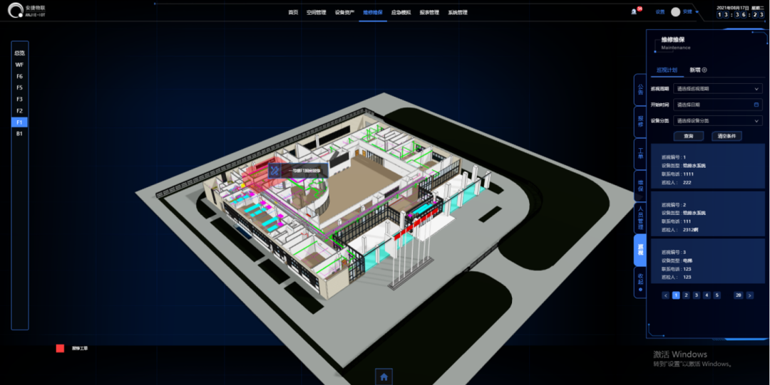 基于完整知识产权的BIM三维图形引擎与开发维护计划、资产管理、灾害应急模拟等运维管理软件,安捷物联形成了系统的运维BIM软件方案,自主研发出【基于BIM可视化运营管理平台V1.0】,此平台在课题中成功应用,并取得了一定成果。