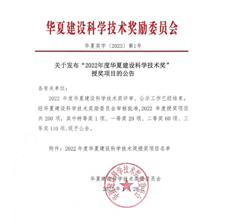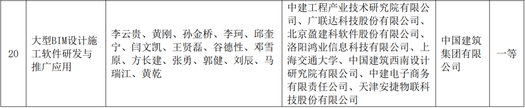 日前,课题成果——大型BIM设计施工软件研发与推广应用获得了2022年度华夏建设科学技术奖一等奖,奖项由华人策略研究论坛、中建工程产业技术研究院有限公司、广联达科技股份有限公司、北京盈建科软件股份有限公司等单位联合申报。