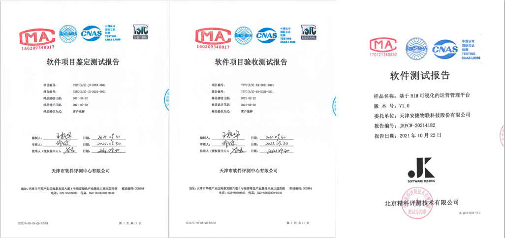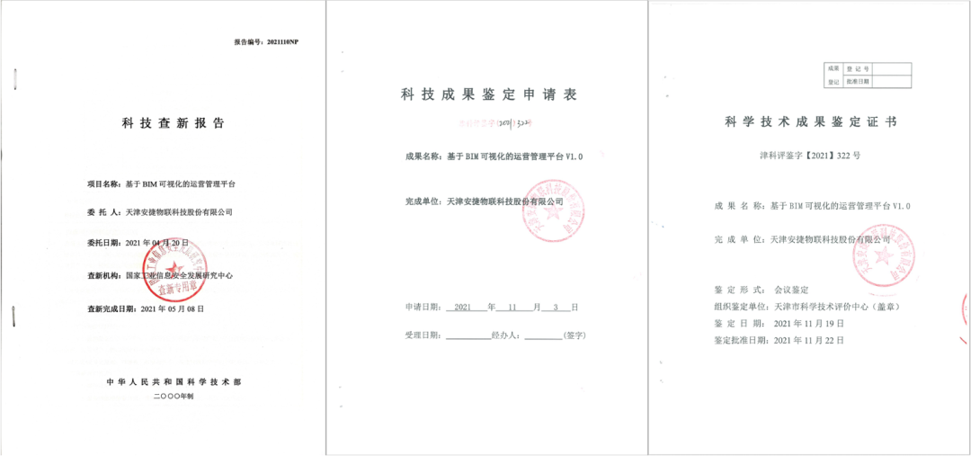 安捷物联自主研发的【基于BIM可视化运营管理平台V1.0】,经第三方权威机构认证,主要性能指标已达到国内领先水平,并实现了四大技术创新。