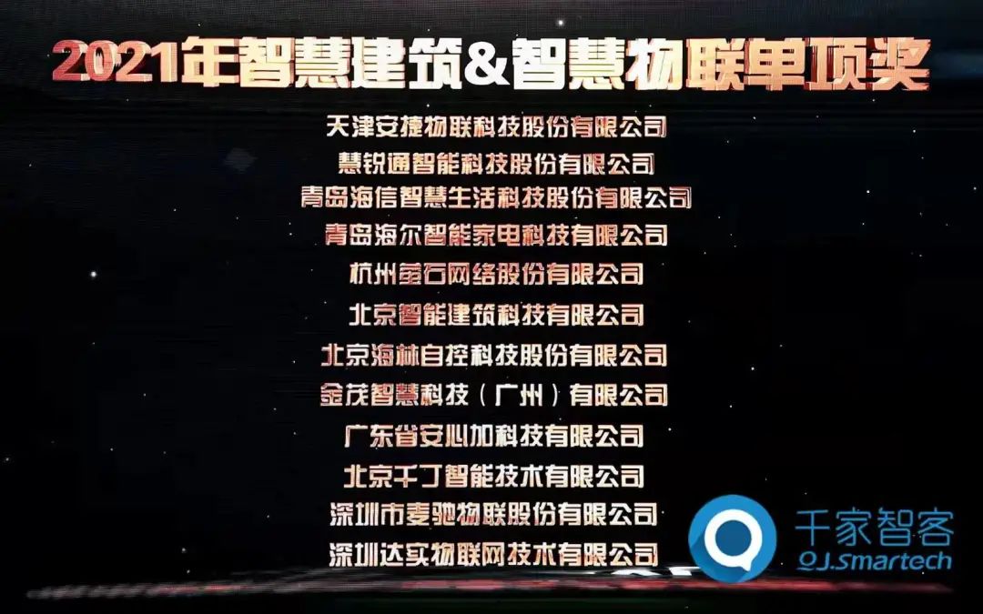近日,由千家智客联合千家品牌实验室共同举办的2021年度“中国智能建筑品牌奖”颁奖典礼在广州东方宾馆盛大举行。安捷物联斩获【2021年智慧建筑&智慧物联单项奖】与【2021年十大建筑能源管理品牌奖】两大奖项。