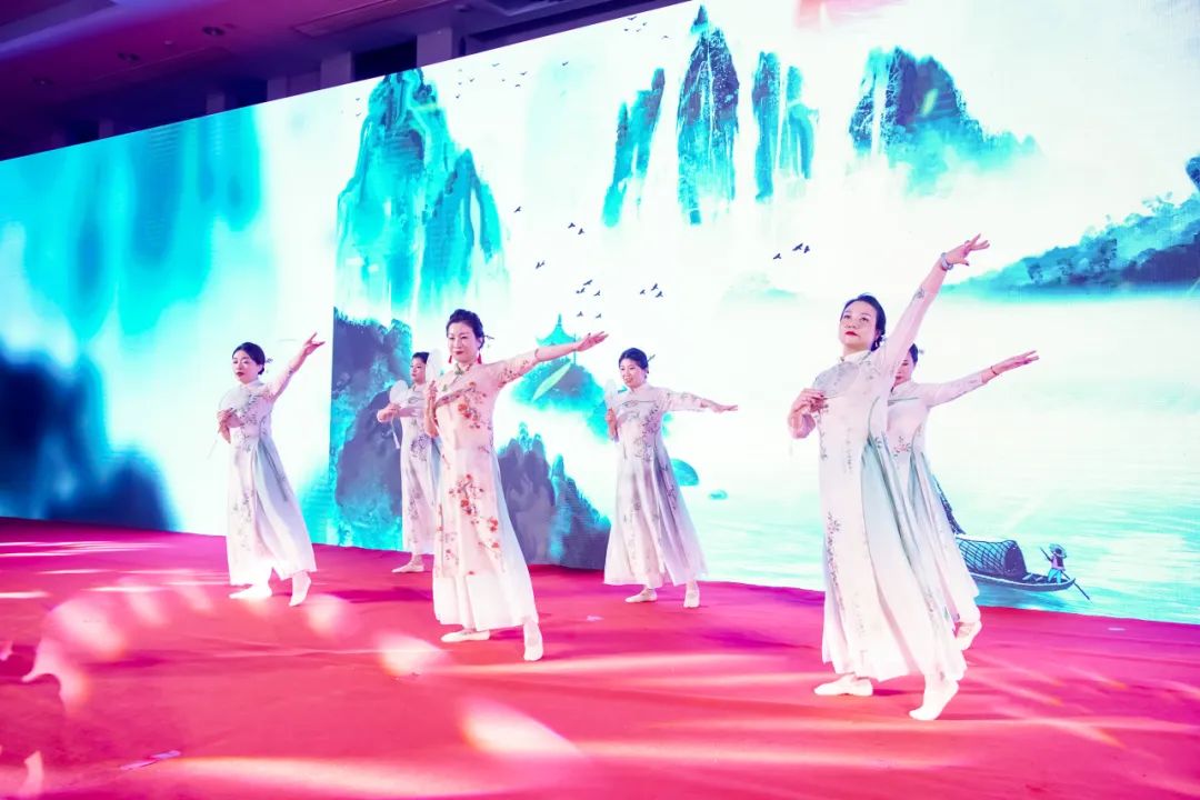 安捷物联高级副总裁赵若汐、丰美丽,人力资源部、综合办经理庞嘉莹,技术经济部王亚琼,人力资源部刘莹以及合约部王园共同带来的古典舞《声声慢》,带领观众领略了江南水乡的别样韵味,舞姿婀娜,韵味无穷。