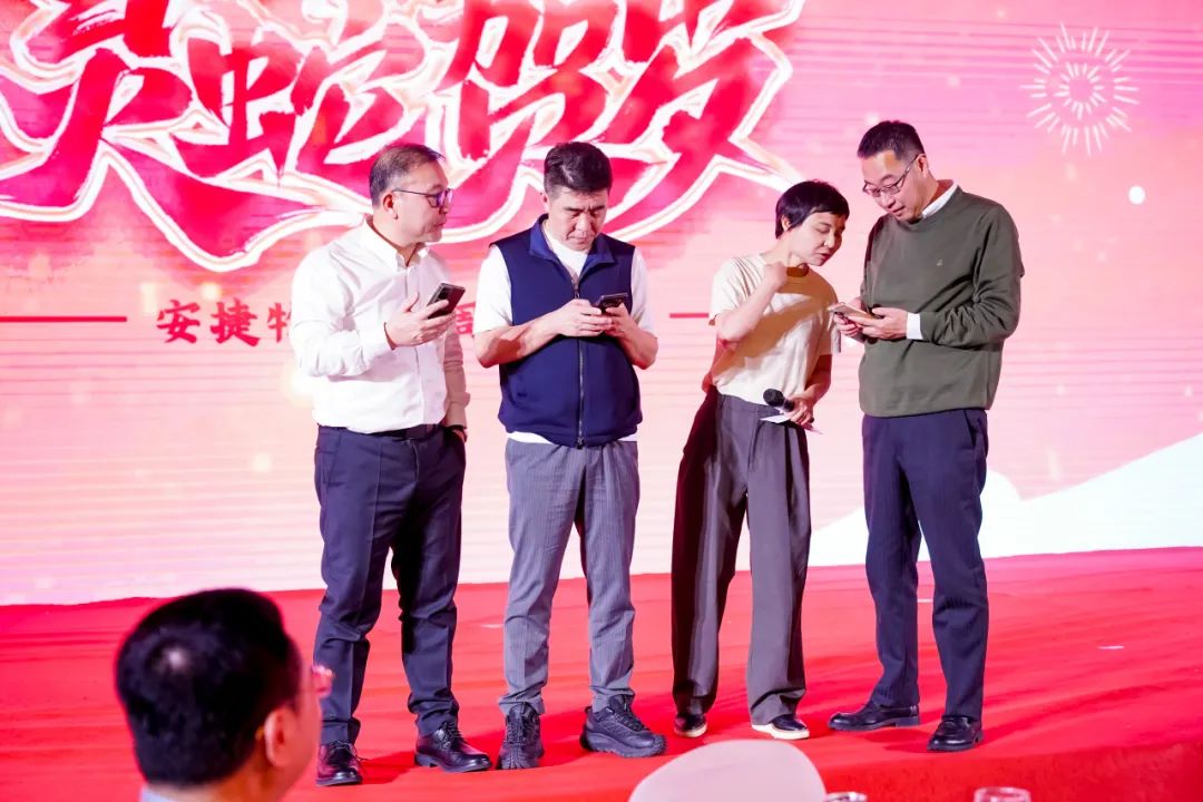 抽奖环节结束后,年会现场迎来了一个特别的彩蛋时刻。安捷物联董事长刘柏呈、执行董事庞文魁、总裁王涛、执行总裁滕洁在微信群内临时发放群红包,大家疯狂抢抢抢,瞬间点燃现场氛围,员工们的欢呼声和笑声此起彼伏。