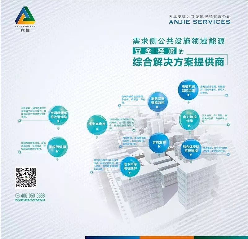 针对于商业地产等智能楼宇建筑,安捷物联可提供楼宇电力系统监测运维、需求侧管理、楼宇充电宝、供热系统改造与运维、空调系统节能改造、电梯系统监控与运维、消防系统的监测、地下车库及楼宇照明监控、楼宇安防系统的监控以及生活用水系统的监测。