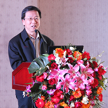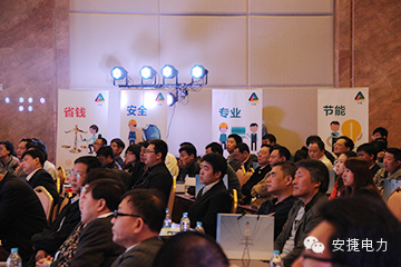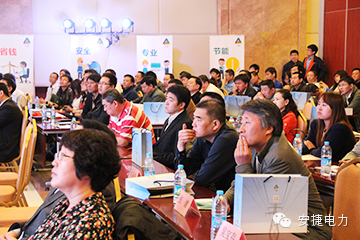 会议中,安捷电力总经理米玉淼为大家详细介绍了“变电站智能运维模式”在园区企业中的应用,传递了安捷“省钱、安全、专业、节能”四大服务优势。